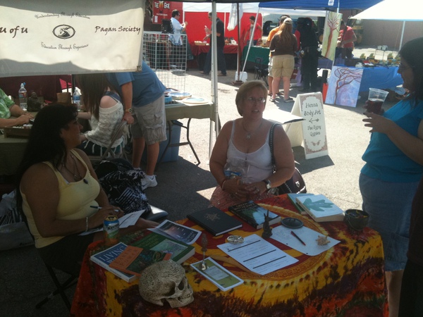 Thanks to all who came and helped out at the booth at this years Salt Lake Pagan Pride Day. This year’s was hosted by Crone’s Hollow on Main street on September 10, 2011 from 9am-6pm. The smaller space was unable to allow for all the vendors that usually would have came. UUPS gave away lots of information, met new people, discussed why we’re here and even had a few people sign up! Live rock music provided by Lady of the Lake set the scene as the sun rose high in the sky before we were all rained out about 4:00 pm. As a bronze sponsor of Pagan Pride Day in Salt Lake City, UUPS was happy to attend, renew friendships, relationships and provide the support and inclusive of the pagan community in the Salt Lake Valley. Till next year!