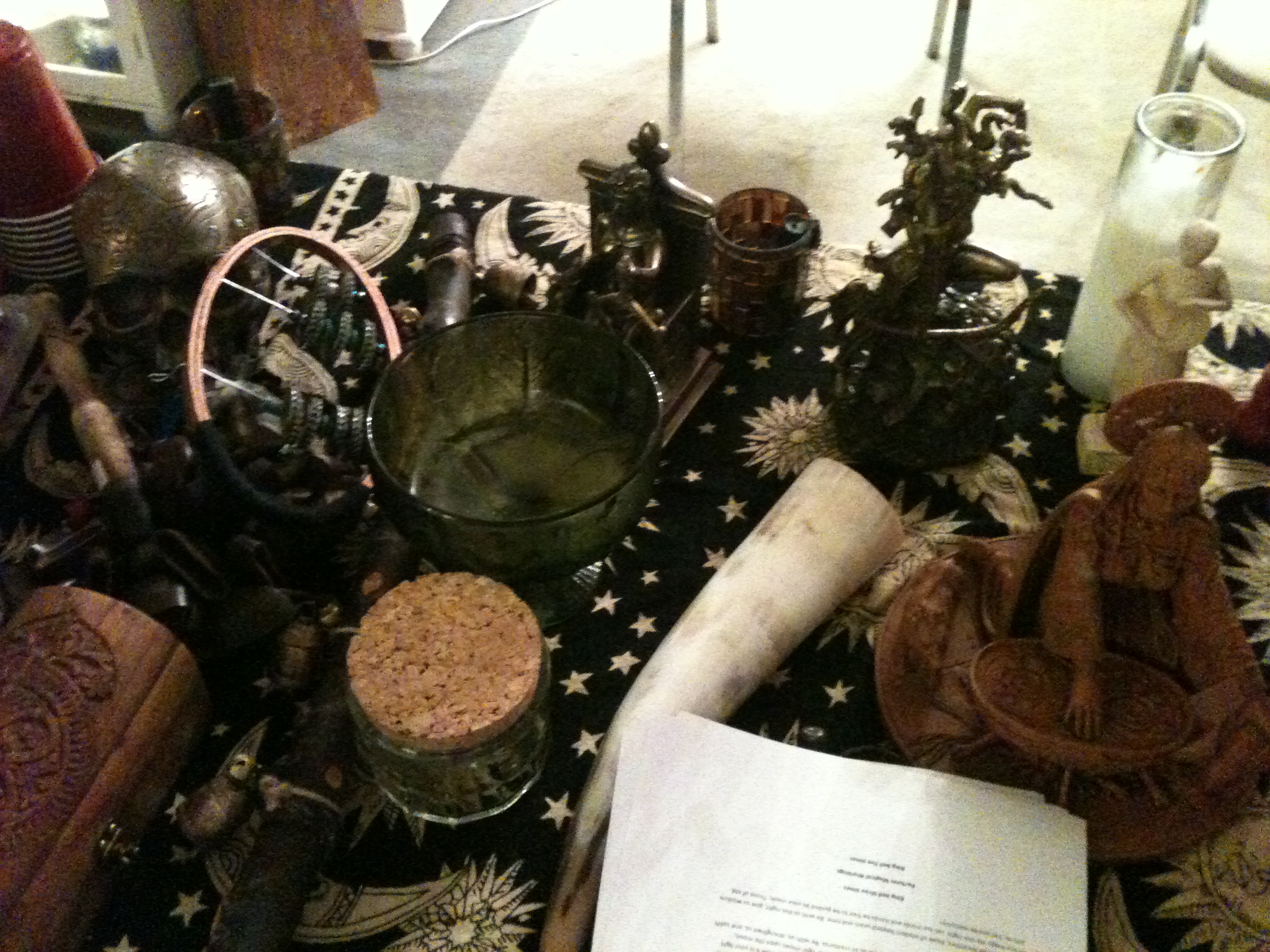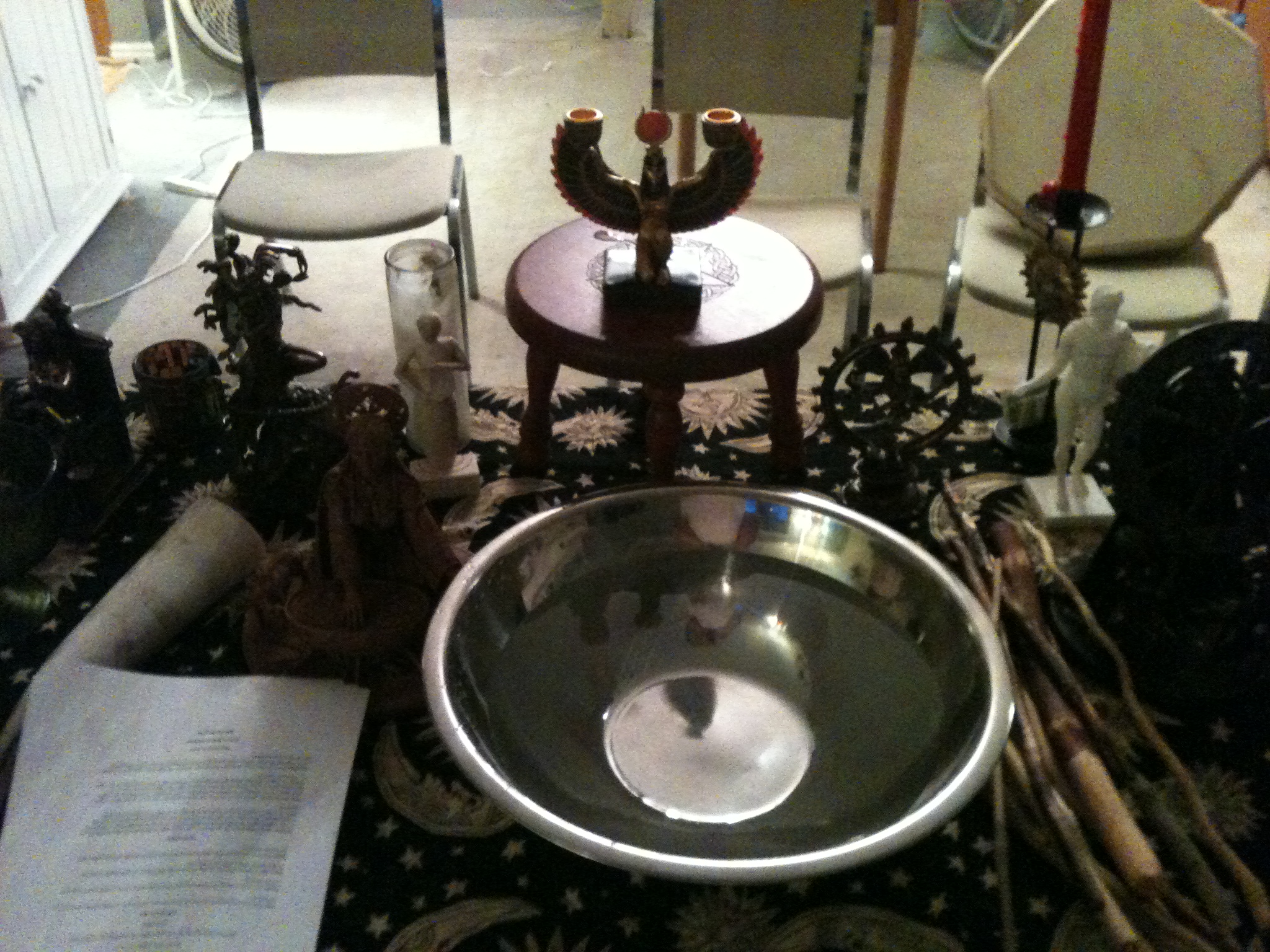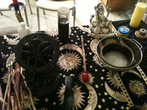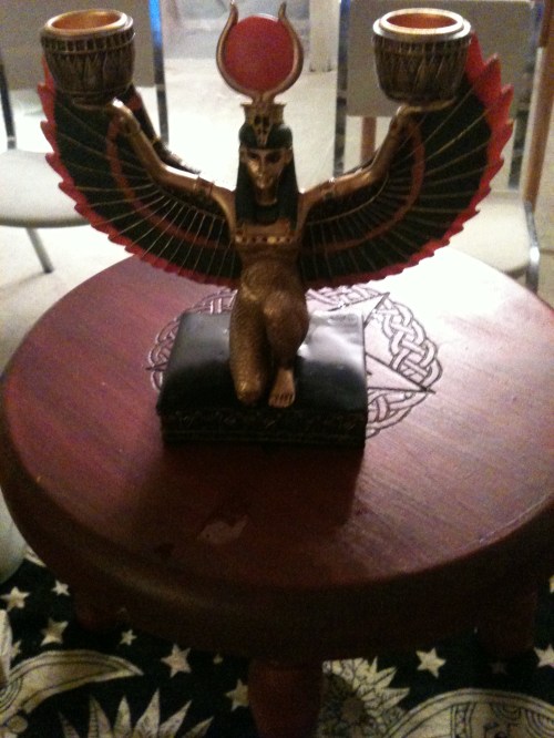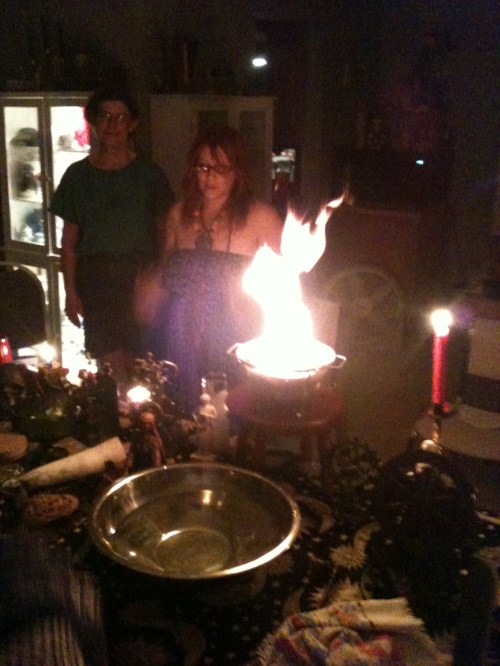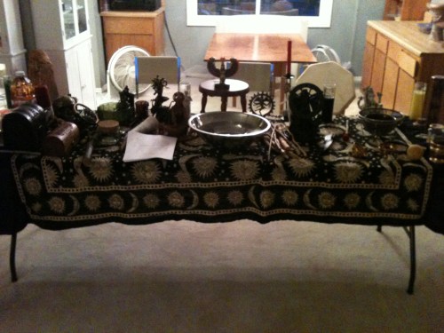 Next, those who needed to performed cleansing and charging magic before a welcoming of the new deities to the humble abode of the president. With drums, rattles, sistrums and other percussion instruments, the members and guests hailed and welcomed new gods and goddesses to the circle such as Apollo and Medusa! They certainly showed up, as everyone reported feeling the shivers up and down there spine the power the gods and goddesses bring.