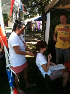 As the day rolled on, the lines didn’t let up for the people wanting free ten card spread tarot readings. Luckily, UUPS and ISD had several readers on hand to switch off with so everyone got a break, ate lunch and rested under the cool shade of maples and the tent while listening to traditional gypsy violin