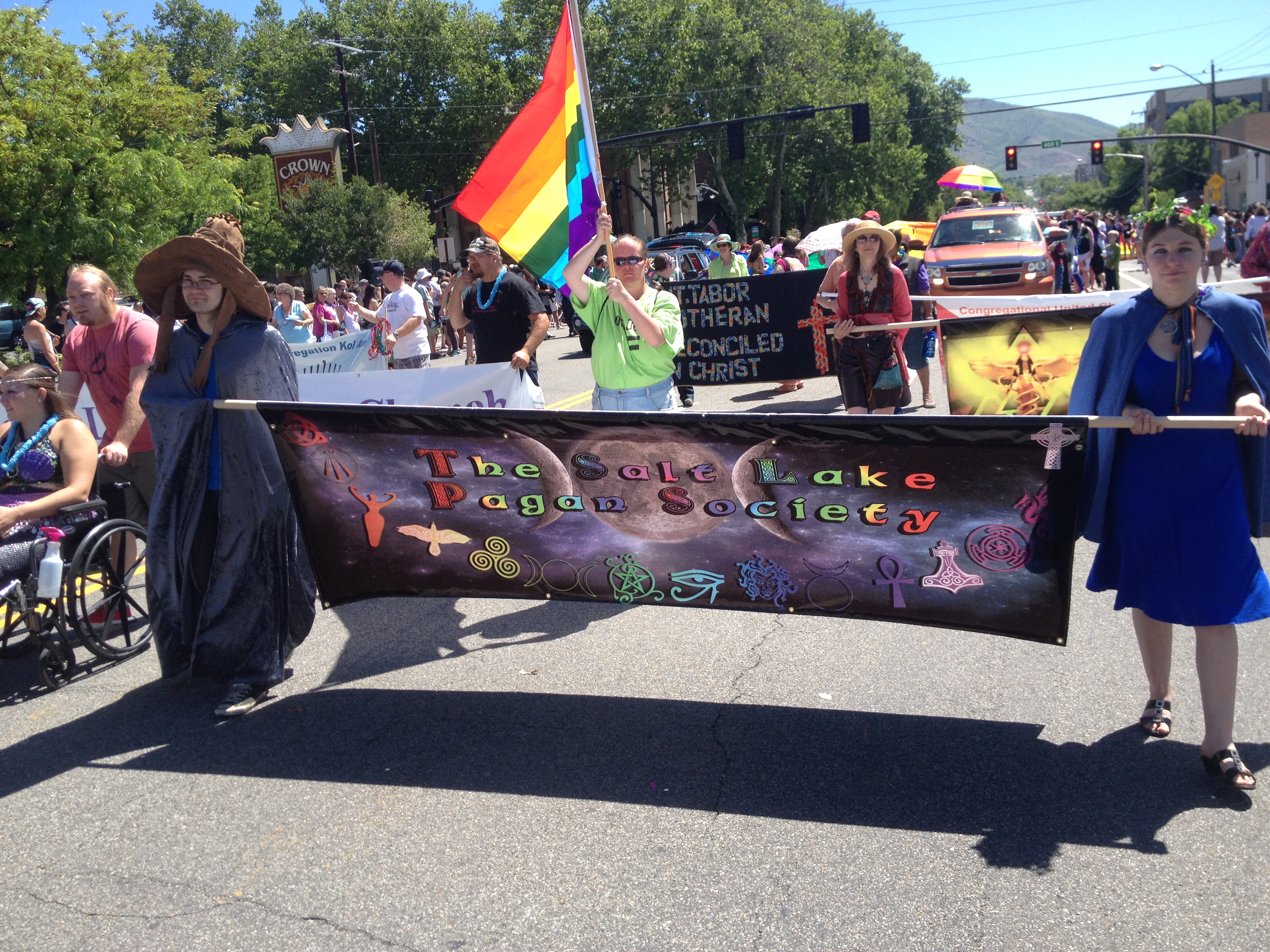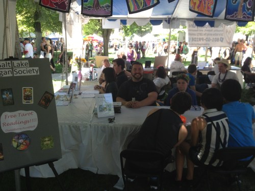 Sunday, June 2, 2013 brought the Utah Pride Festival Parade at 10 am. SLPS marched in robes and hates with the Utah Pride Interfaith section. After the exhausting march down 200 S, SLPS returned and did more free readings for people at the festival. It is estimated that 300 people stopped by the booth and had their cards, cartouche or runes read. What a great way to give service to the LGBT community! SLPS is excited to return next year for a fourth year!
