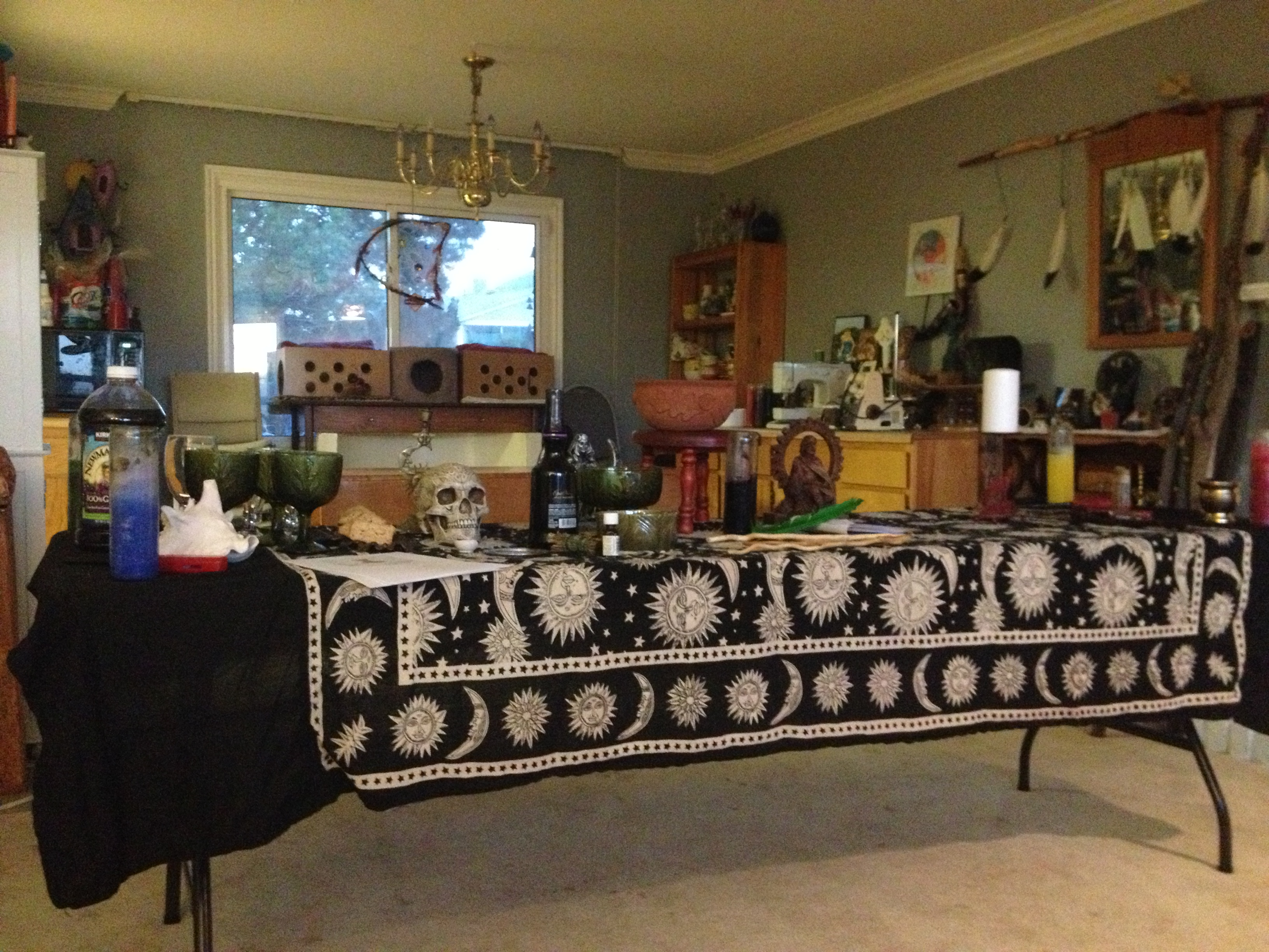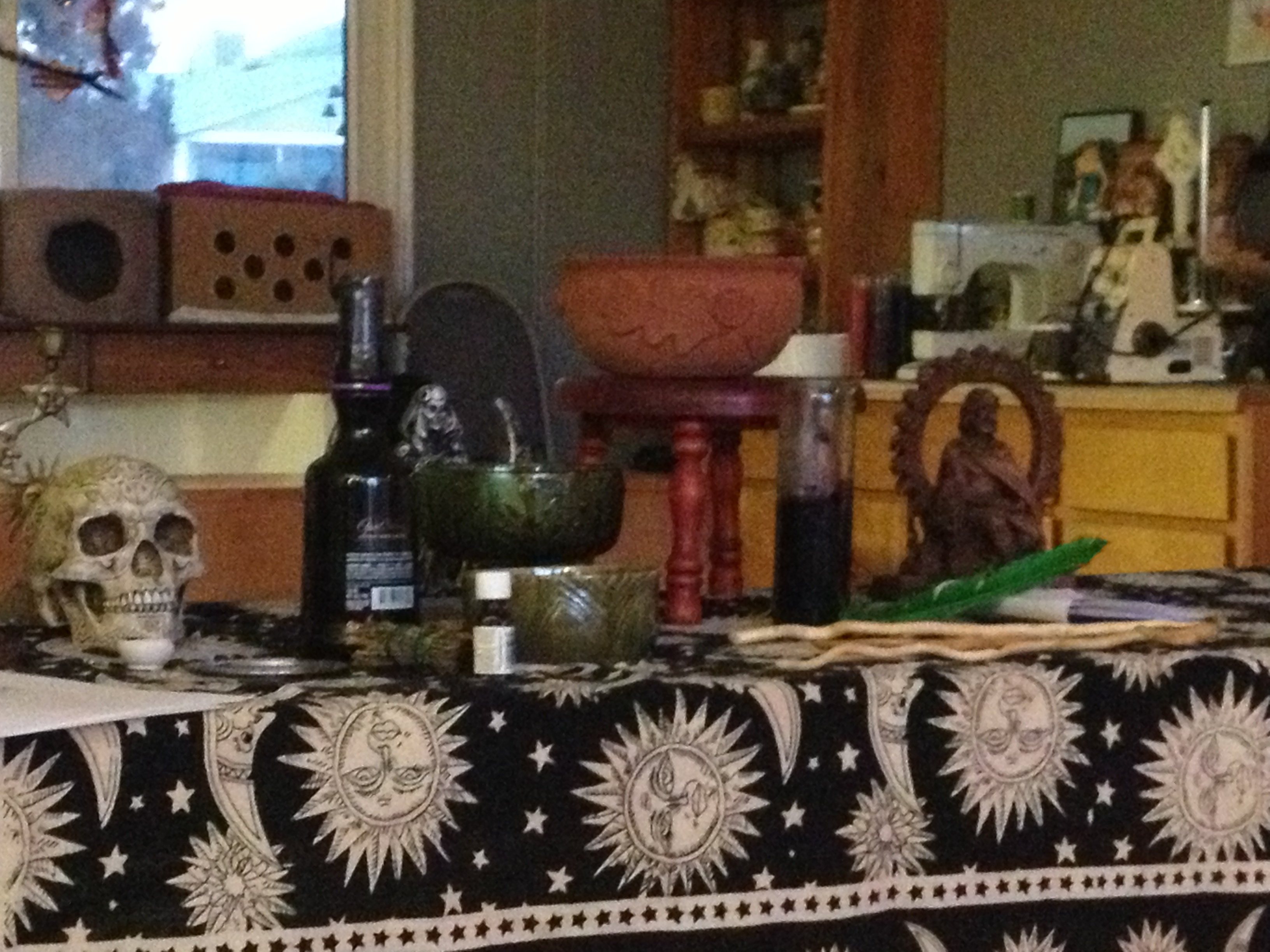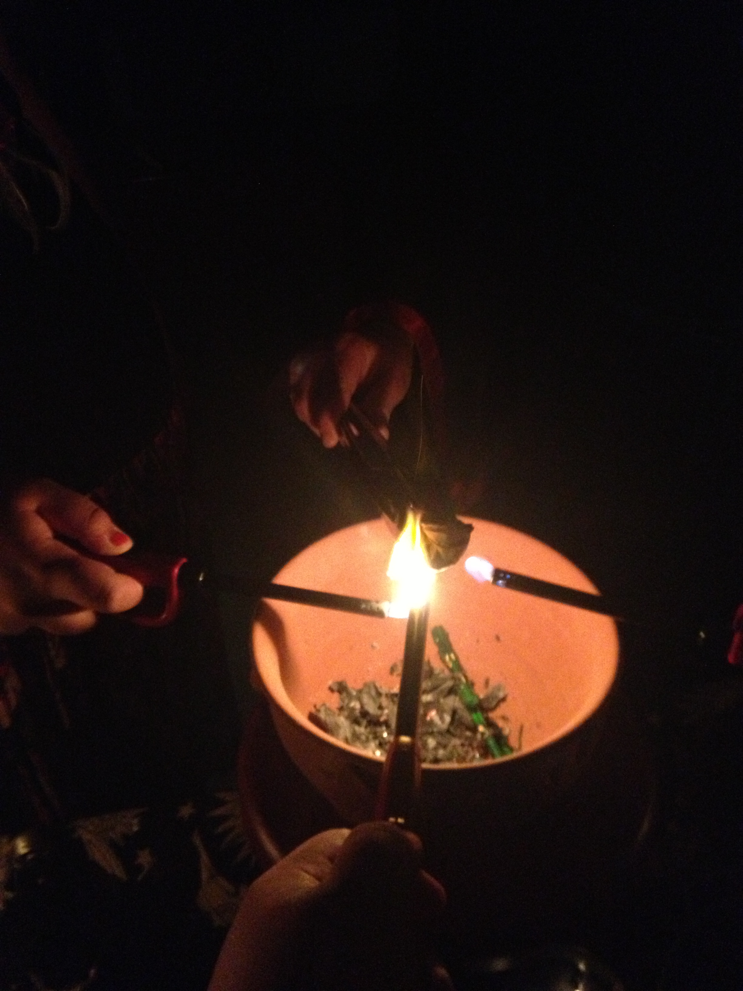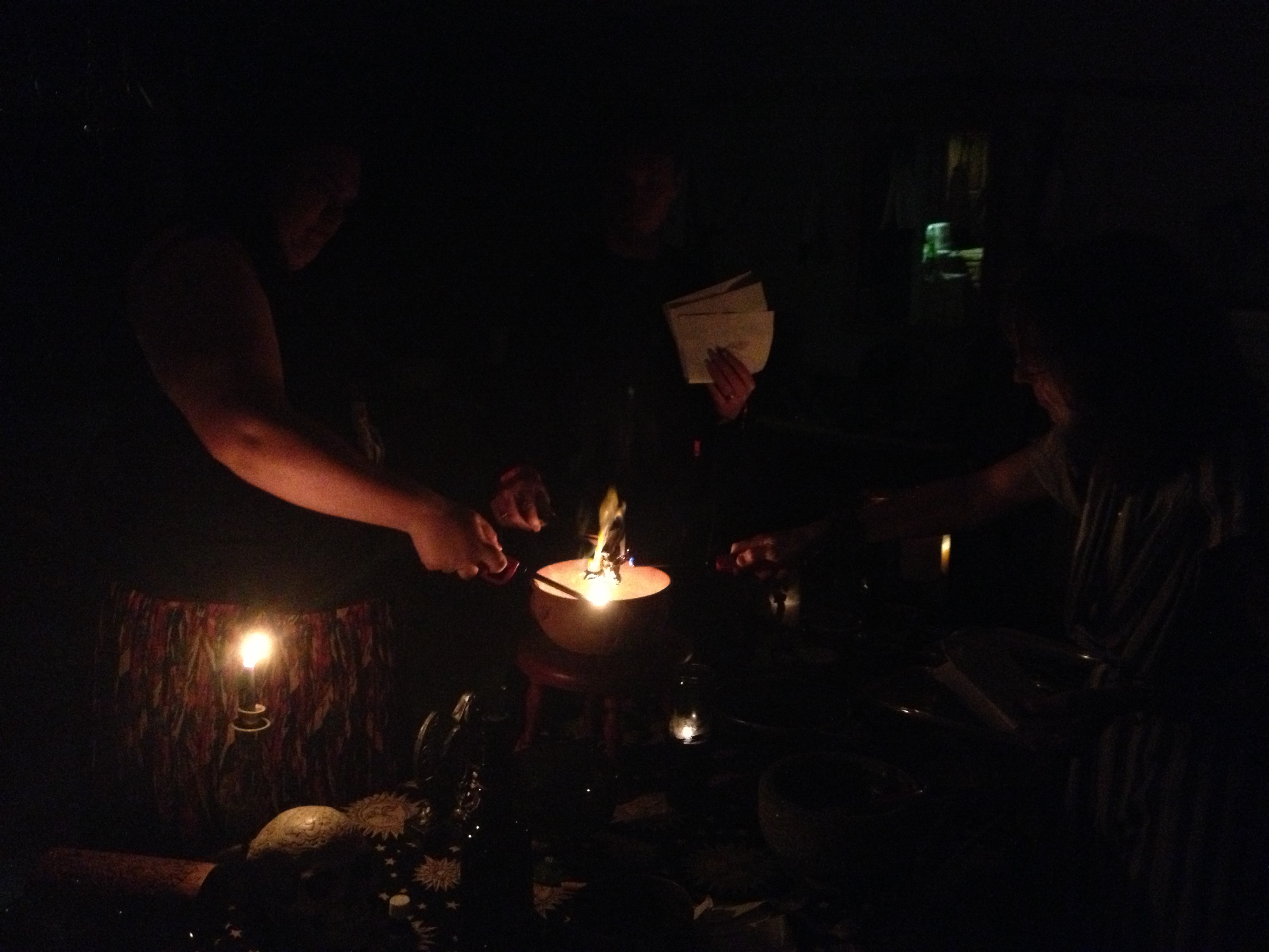 A small group of SLPS members gathered on Saturday, June 8, 2013 at 8pm for the June New Moon Ritual. Starting off with the traditional circles that are cast and a new one by Thor’s Hammer, the members felt the power of the magic immediately. After cleansing, anointings and blessings. The new Awen cauldron custom made for Druid President Daniel Cureton was broken in at this ritual as well as the new stone mortal and pestle. Cactus, rose and sun flower petals were among the many ground up for the spell workings done.
