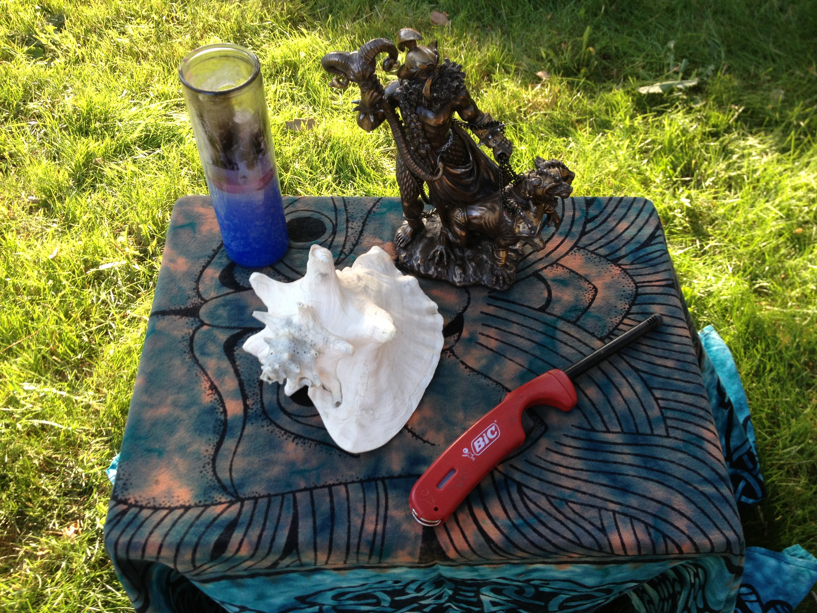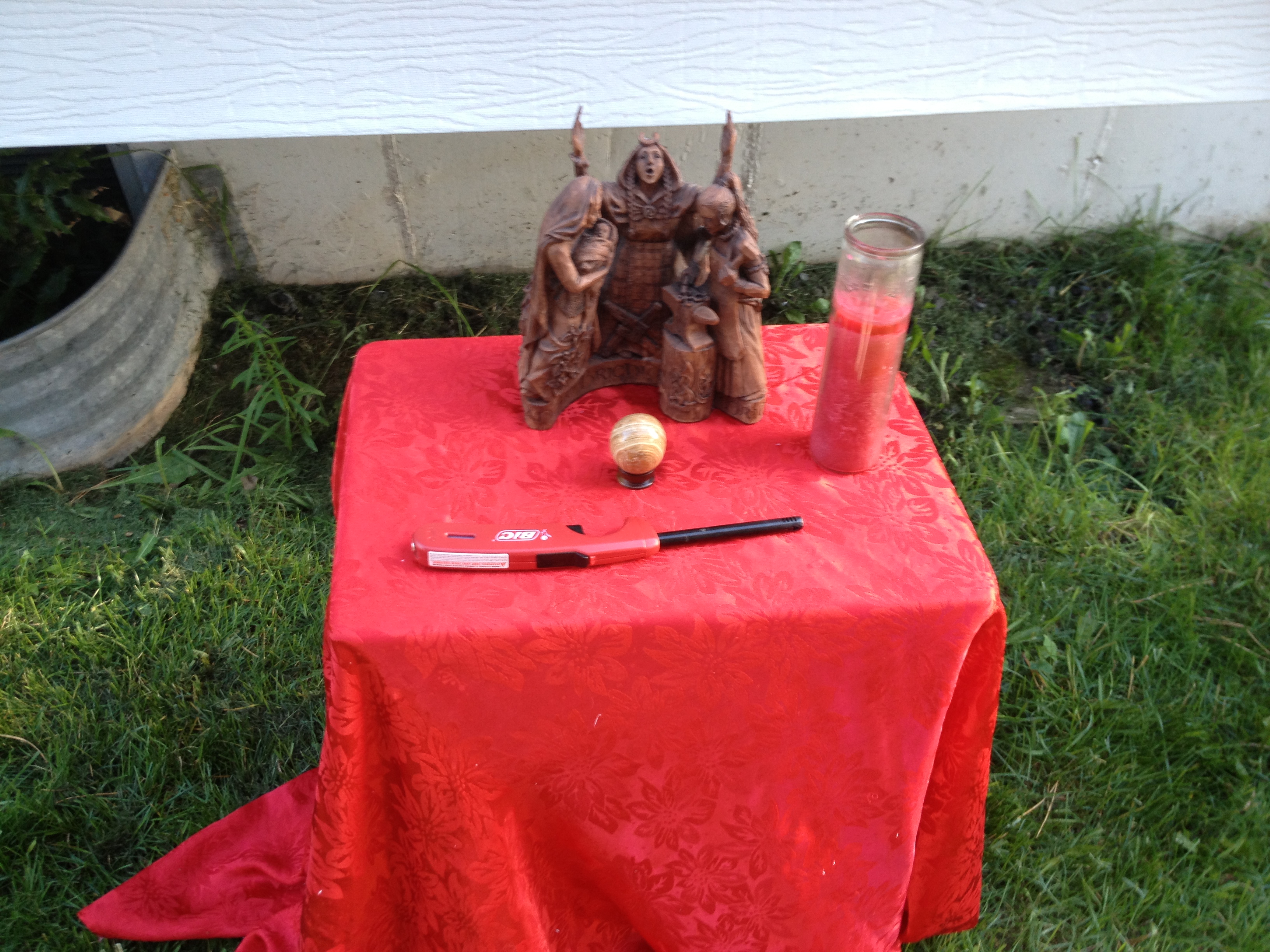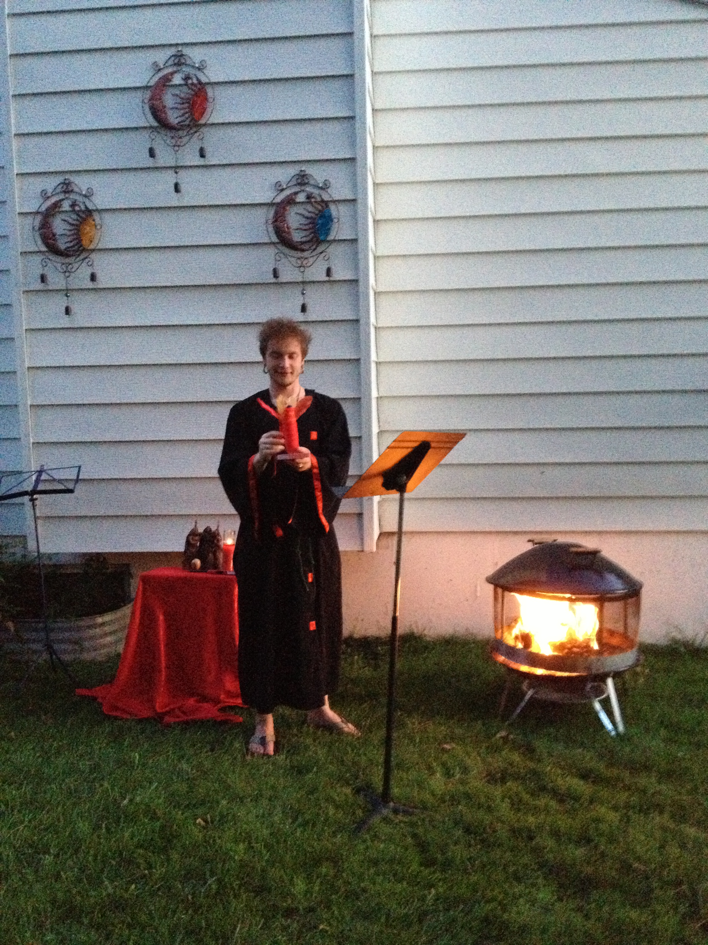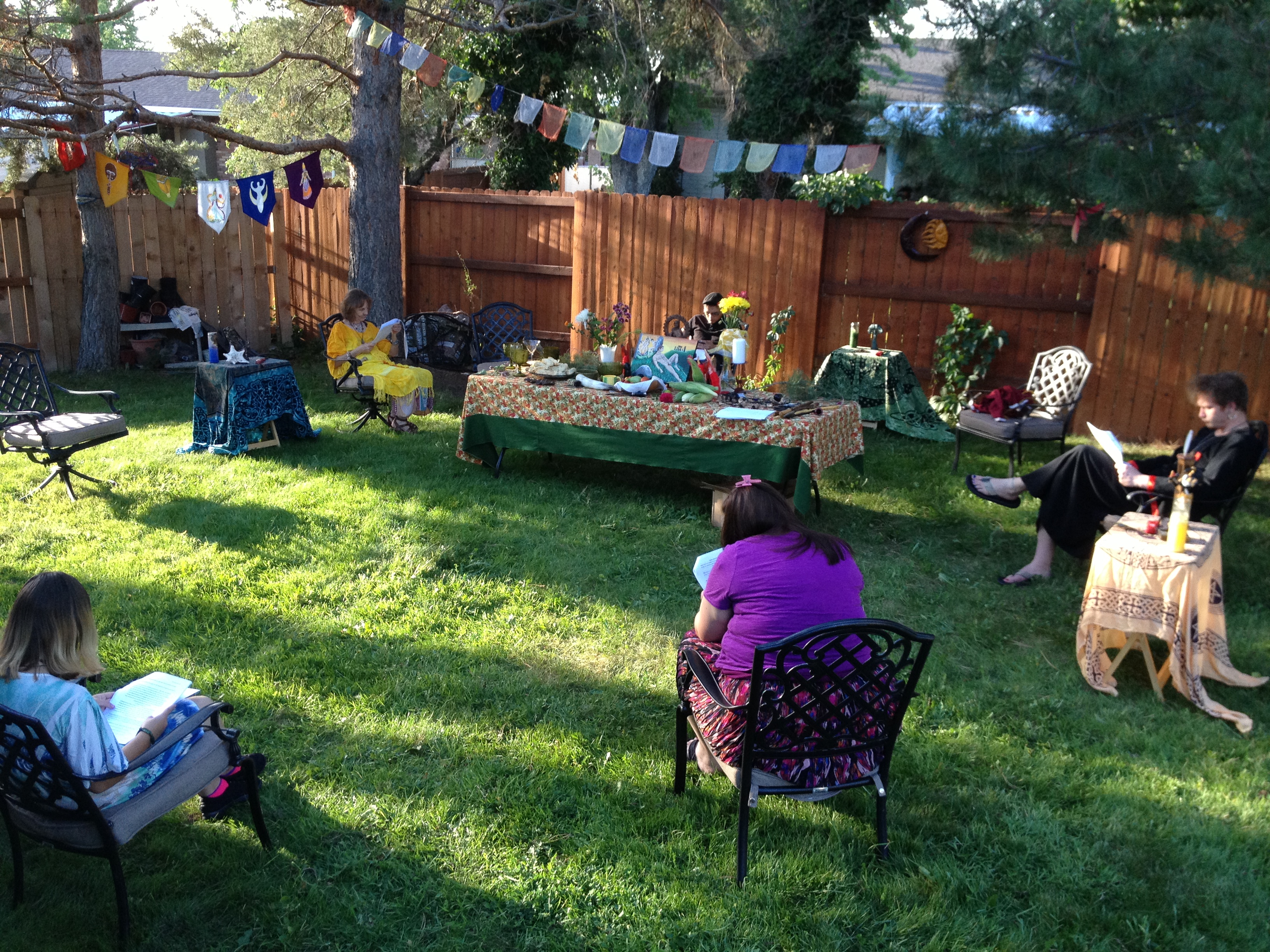 Thanks to all who came and attended Lughnasadh on Saturday, August 3, 2013 at 6pm. The sabbat kicked off with the usual preparations of cleaning the temple site, pine cone and doggie poo sweeps, and set up. A pre ritual crafting activity took place with several society members making Corn Mothers. At this time of harvest of the grains, corn or maize as it was known in South America, was the sustaining grain for the peoples there. The Corn Mother was believed to be the responsible for production and care of her peoples through providing corn. Since this is a crop Lughnasadh, it was appropriate to make and decorate them to her and to Lugh.