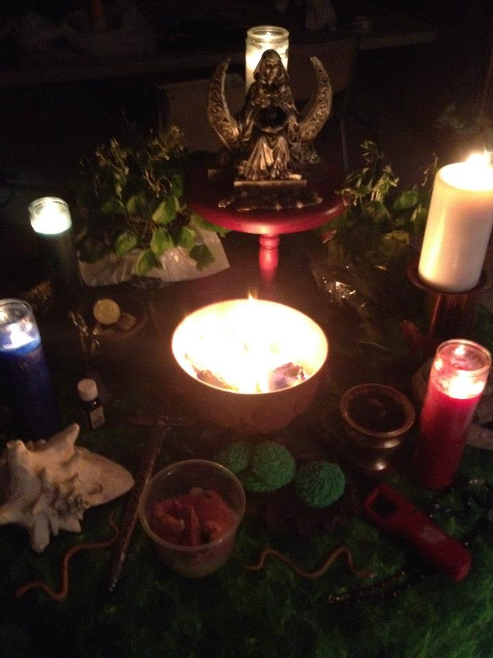 March 2014 St. Patrick Full Moon Ritual, altar with fire, Monday, March 17, 2014 Salt Lake City, UT
