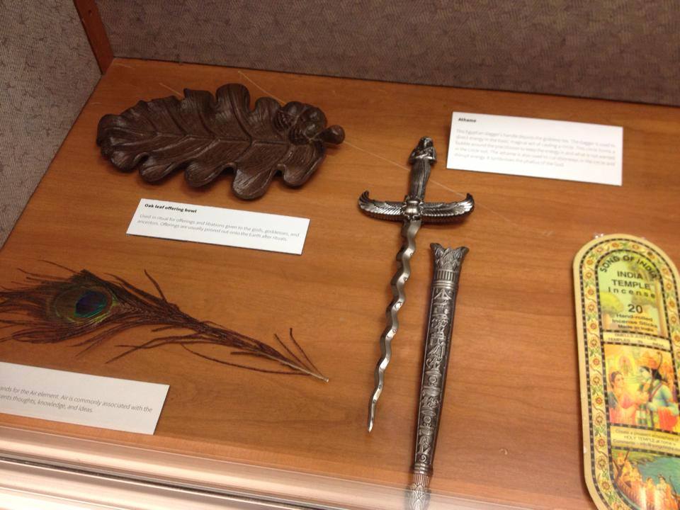 A Look at Paganism Exhibition, Ritual items and elementals, University of Utah J. Willard Marriott Library Level 1, January 17- March 16, 2014, Salt Lake City, UT