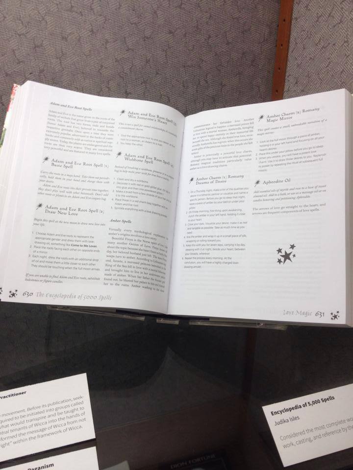 A Look at Paganism Exhibition, The Encyclopedia of 5,000 Spells by Judika Illes, University of Utah J. Willard Marriott Library Level 1, January 17- March 16, 2014, Salt Lake City, UT