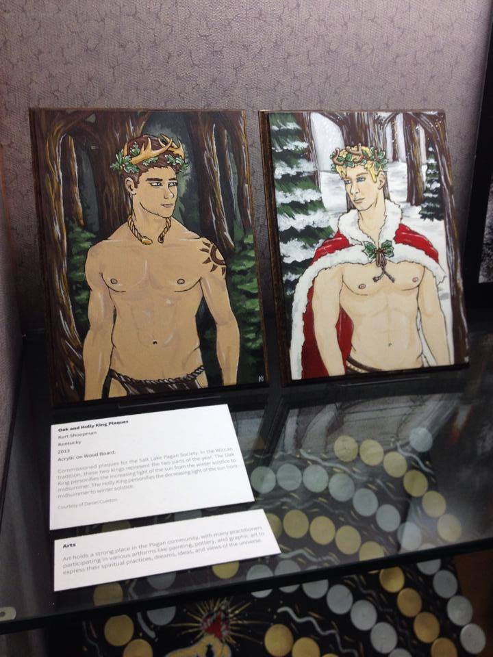 A Look at Paganism Exhibition, Art- Oak and Holly King plaques by Kurt Shoopman of Kentucky, University of Utah J. Willard Marriott Library Level 1, January 17- March 16, 2014, Salt Lake City, UT