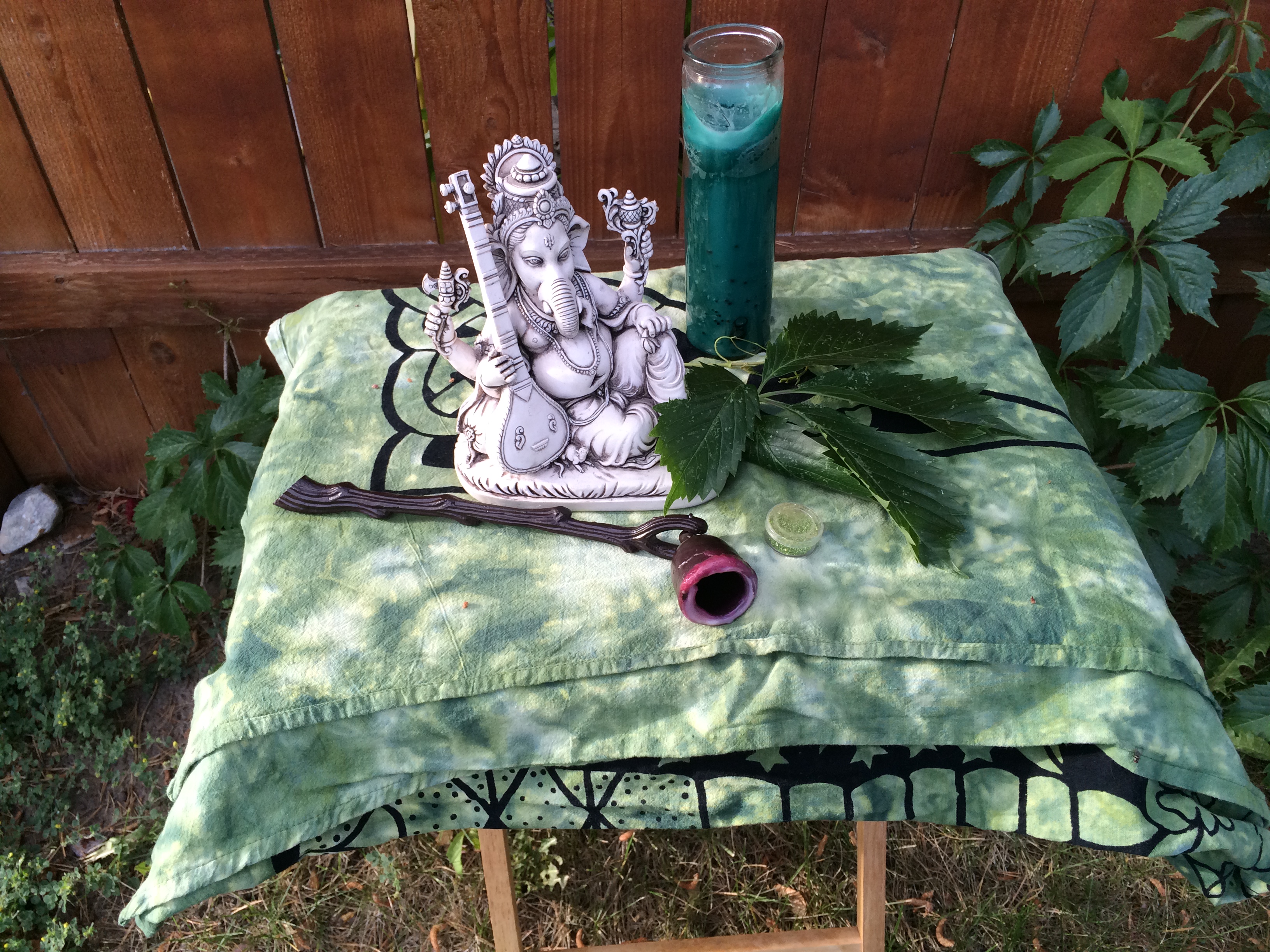 That night about 2am, the demon showed up. Everyone was around the fire outside, but the noises and uneasiness of the environment were felt, eyes were upon us and everyone was on edge. I personally saw the demon, black figure with white eyes, rush towards me from the Ganesh shrine. It later tried to posses me. I called Gwen Allen, our voodoo priestess and she sent Mama Brigitte over to eat it once it was trapped in the bathroom upstairs (Gwen told us it was hiding in there). We put white cornmeal across the seal, said the Lord’s Prayer, made the cross on the door, and propped up against it one of April Love’s mother’s green chairs that turned out to be solid Oak (most sacred to the druids).