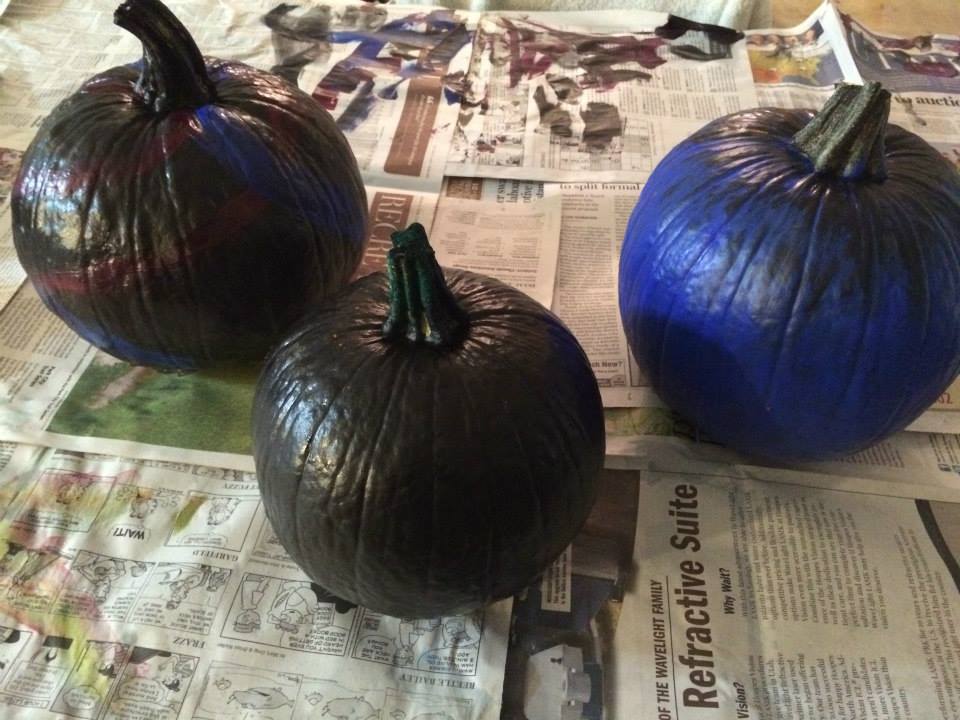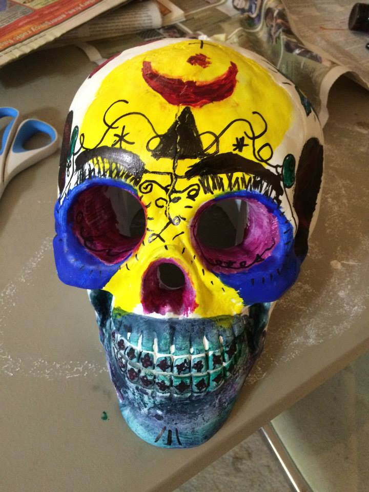 SLPS had a fun night this past Friday, October 25, 2014 crafting items for Samhain next Friday on the 31st of October. We painted pumpkins in different colors and did another large plaster sugar skull to adorn the altar, which is part of the Day of the Dead festivities.