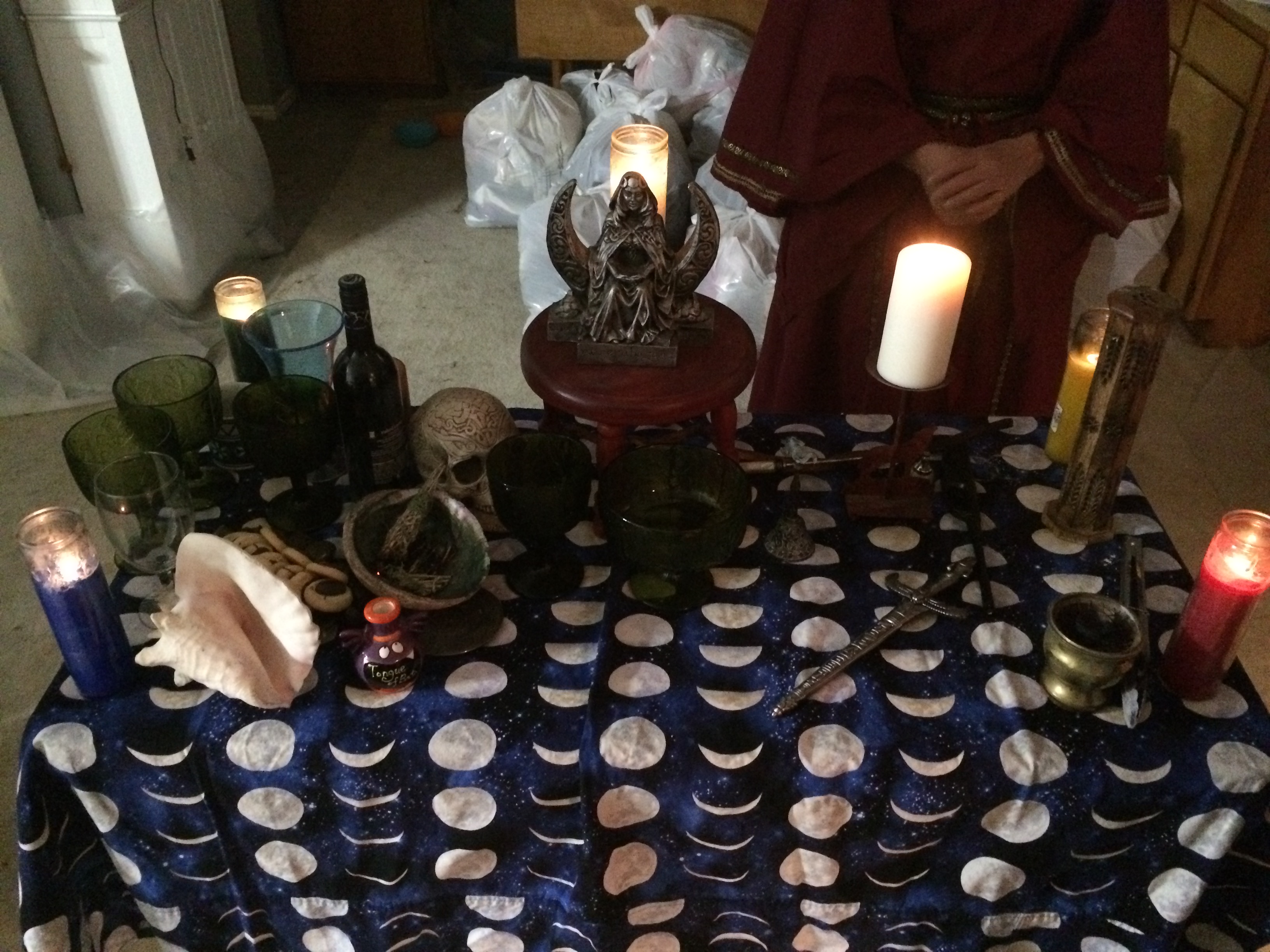 The members of SLPS gathered to honor the Moon Goddess for the last full moon of the year, the December full moon known as the cold moon. This is the cold moon since its occurs around the longest and coldest nights of the year. Offerings to the goddess included red wine, in semblance of the blood of the members, and chocolate cookies, in semblance of their bodies, walking the path of the Goddess. Each month brings the opportunity to evaluate the goals set at the new moon, and work powerful magical rights and be recharged by the moon’s energy.