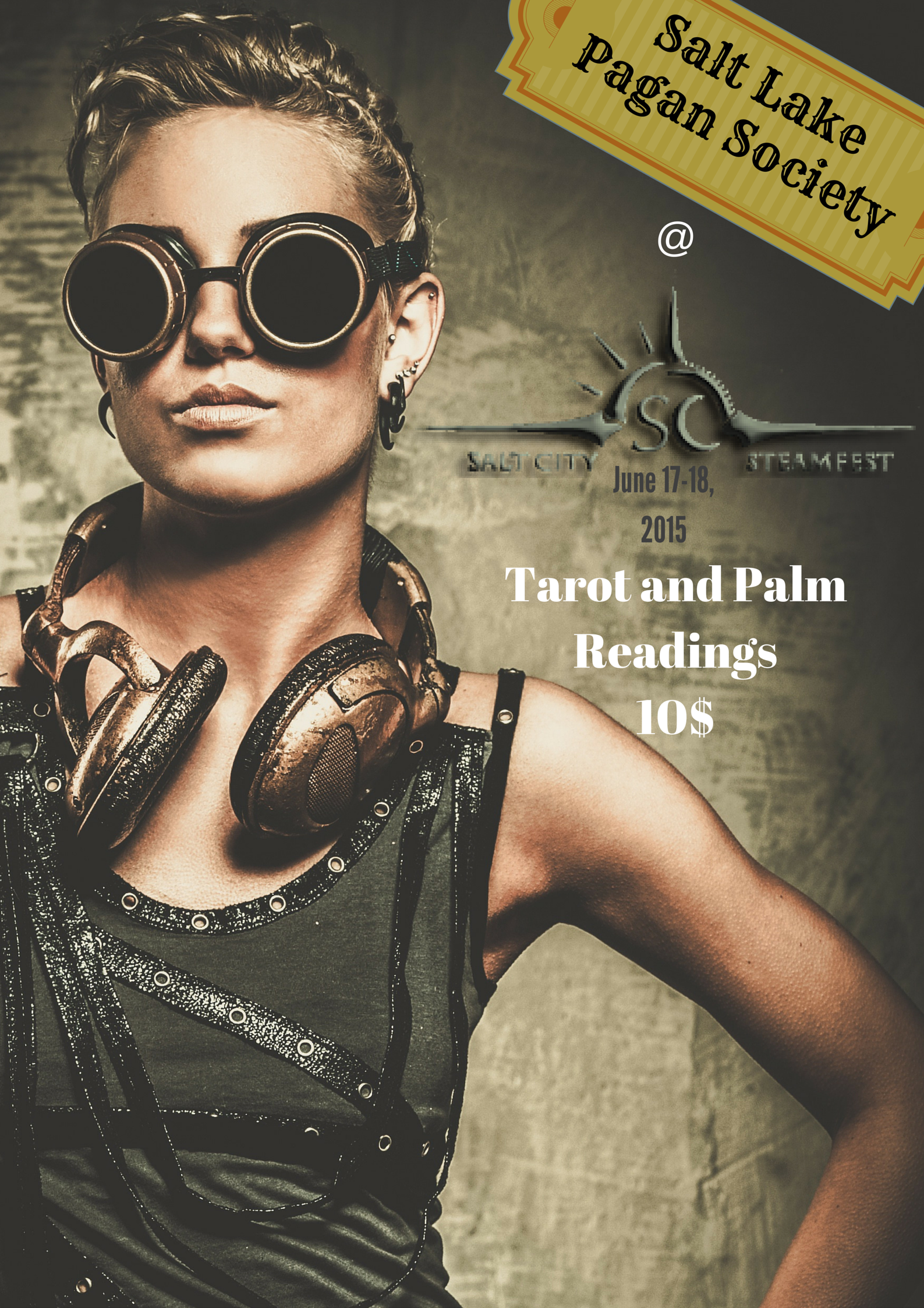 If you love festivals as much as we do, then you’ll be at the Salt City Steamfest: Utah Steampunk Festival! SLPS will be reading tarot, playing cards, and palm July 17-18, 2015 at the Sheraton Hotel, 150 W 500 S in downtown Salt Lake City, The readings will be just $10. Stop by in full costume to get a reading. We’ll have our special steampunk tarots with us.