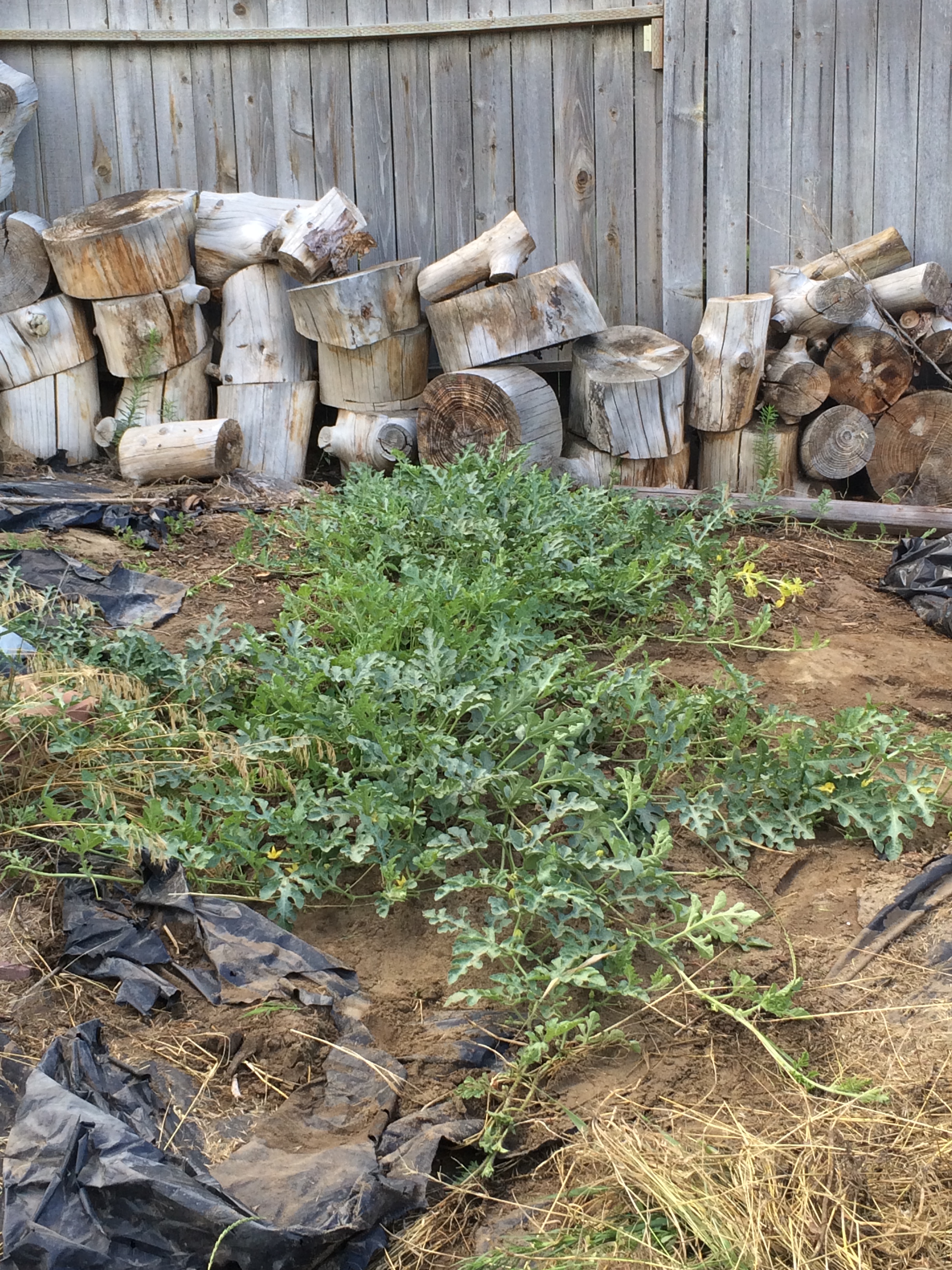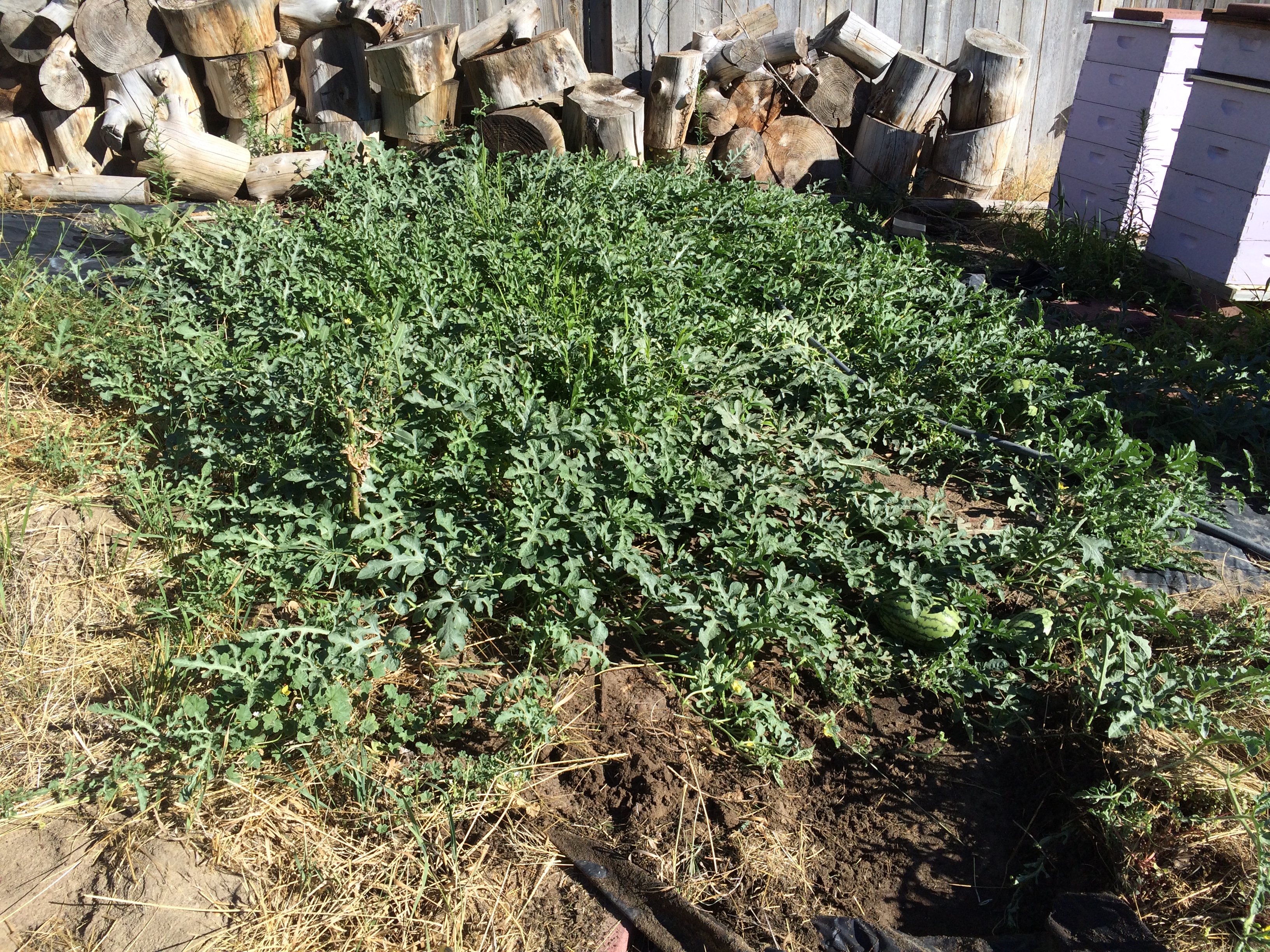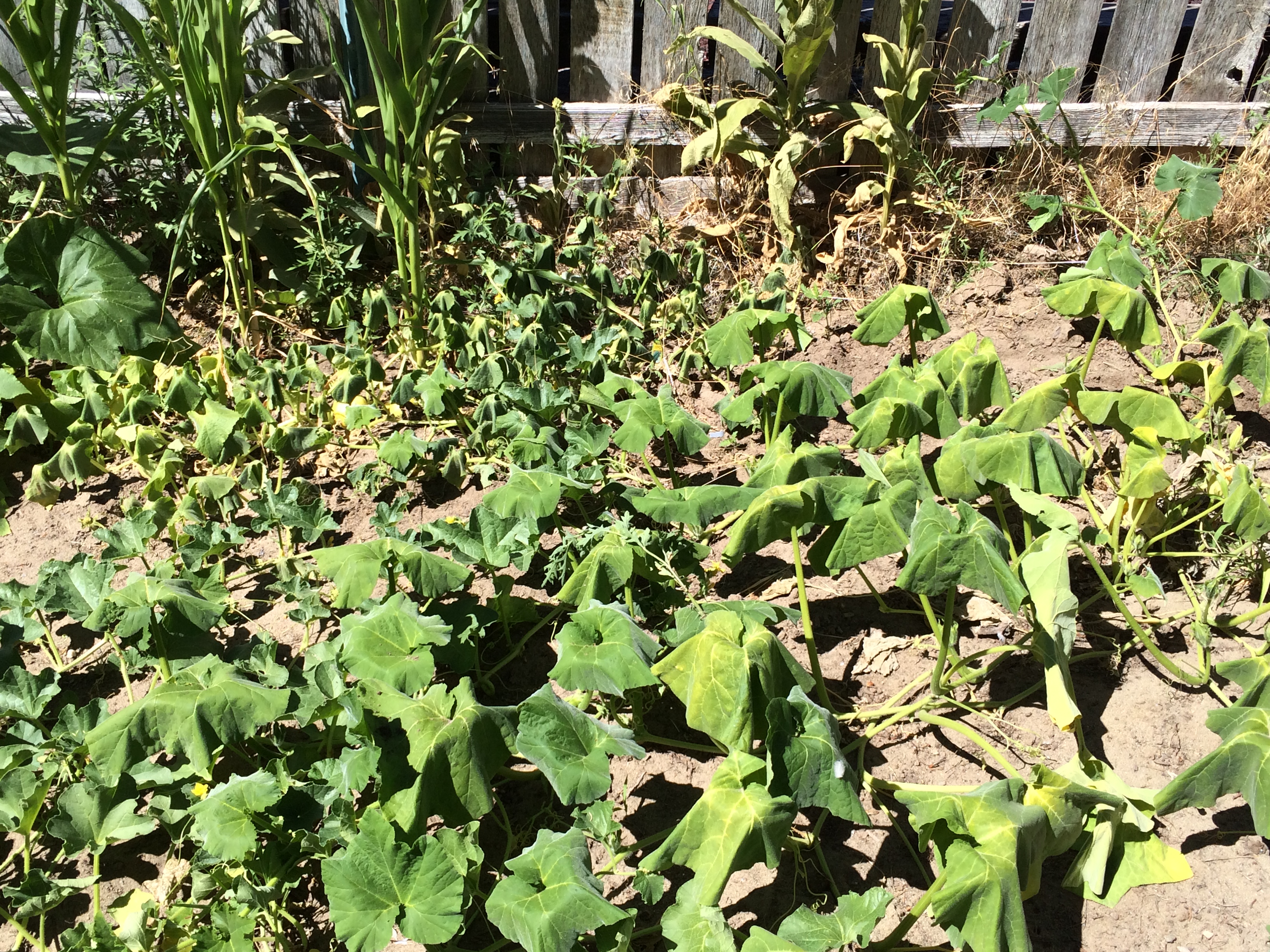 Society Garden 2015, l to r: cantaloupe, green onion, St. Francis, Grape, collard greens, Thursday, July 24, 2015, Salt Lake City, UT