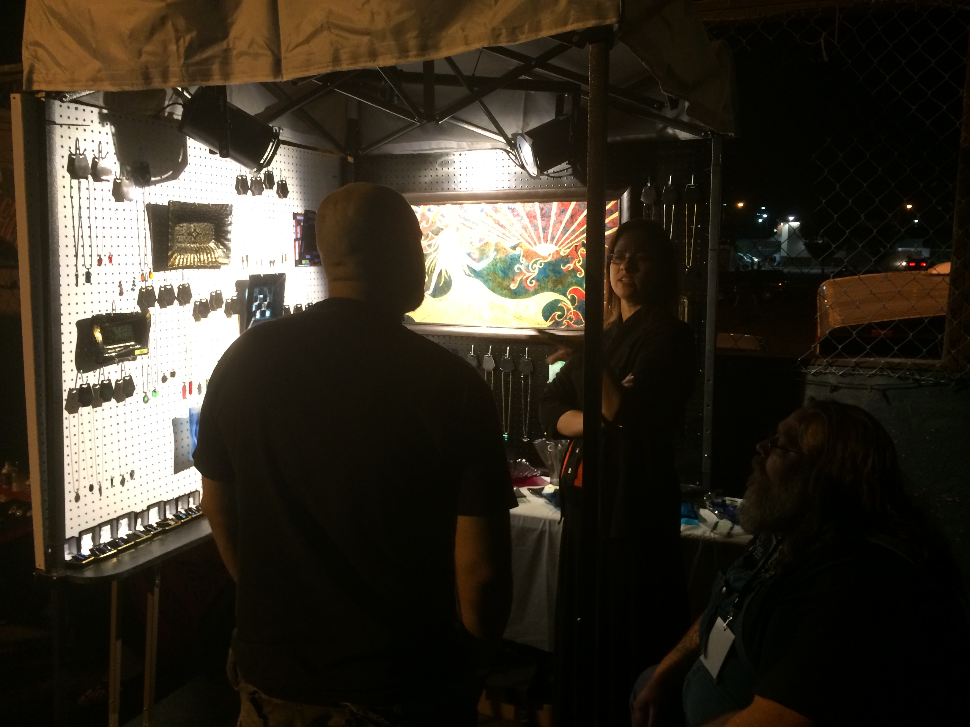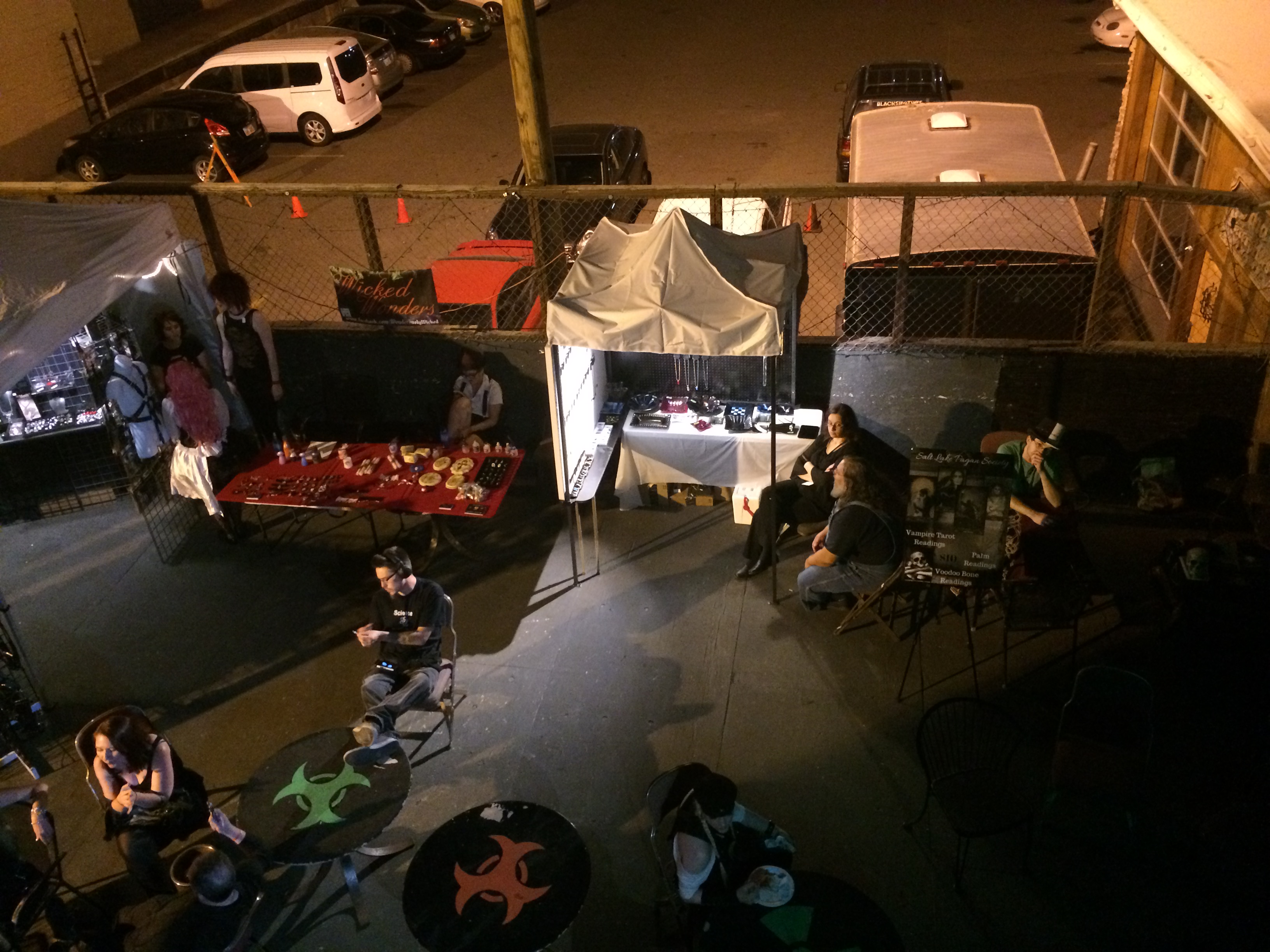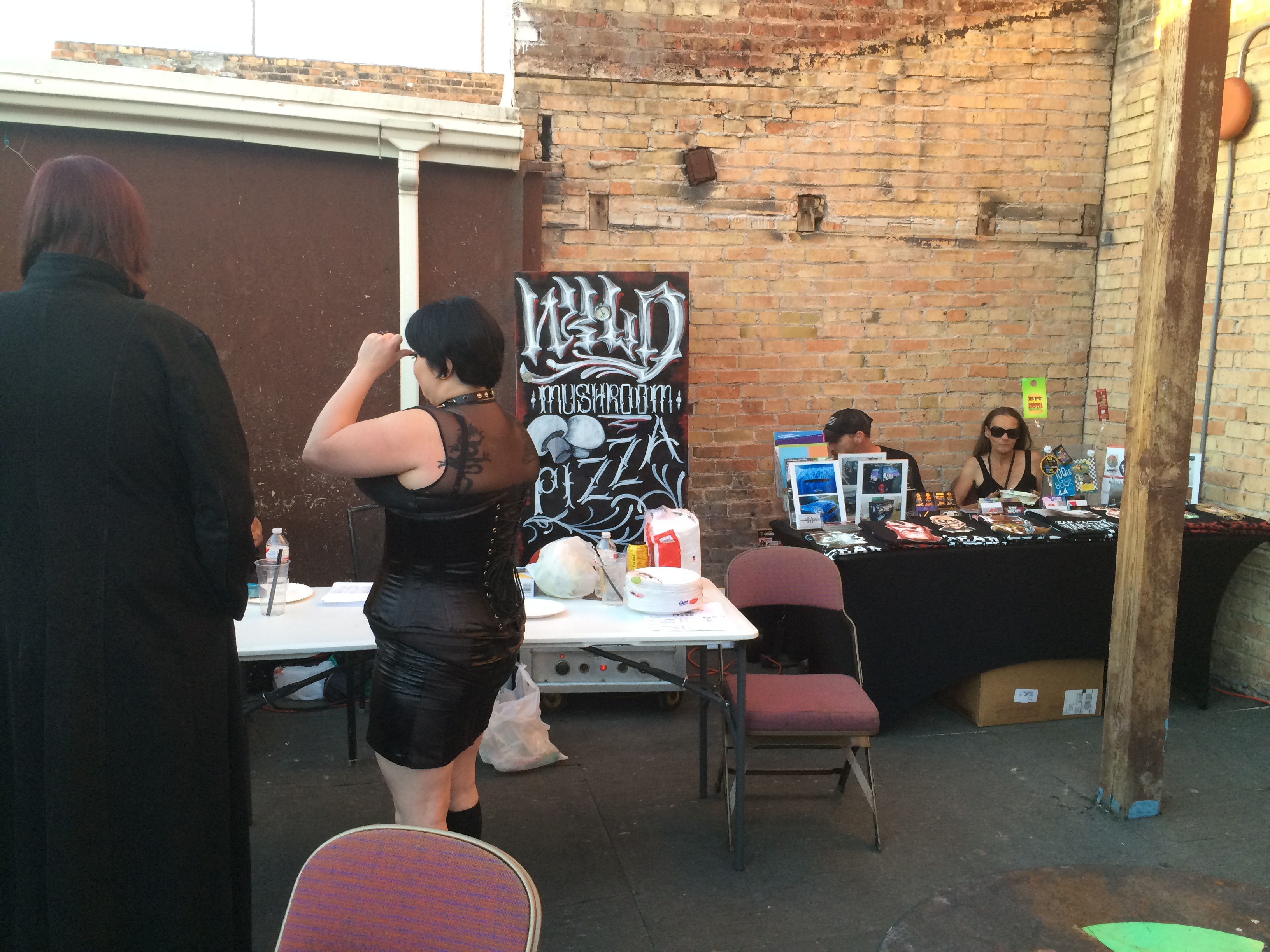 2015 Dark Arts Festival, Vendor Booths-Wild Mushroom Pizza (l) and Domination Designs, Club Area 51, Friday, September 11, 2015,