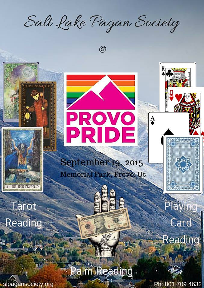 Live in Utah County? Ready to see pride in your community? We are too! SLPS will be attending the 3rd Annual Provo Utah Pride festival at Memorial Park Saturday, September 19, 2015 from 10-6. We will be offering $10 tarot, palm, and playing card readings. We will also have the Mermaids of the Great Salt Lake with us giving Mermaid readings!
