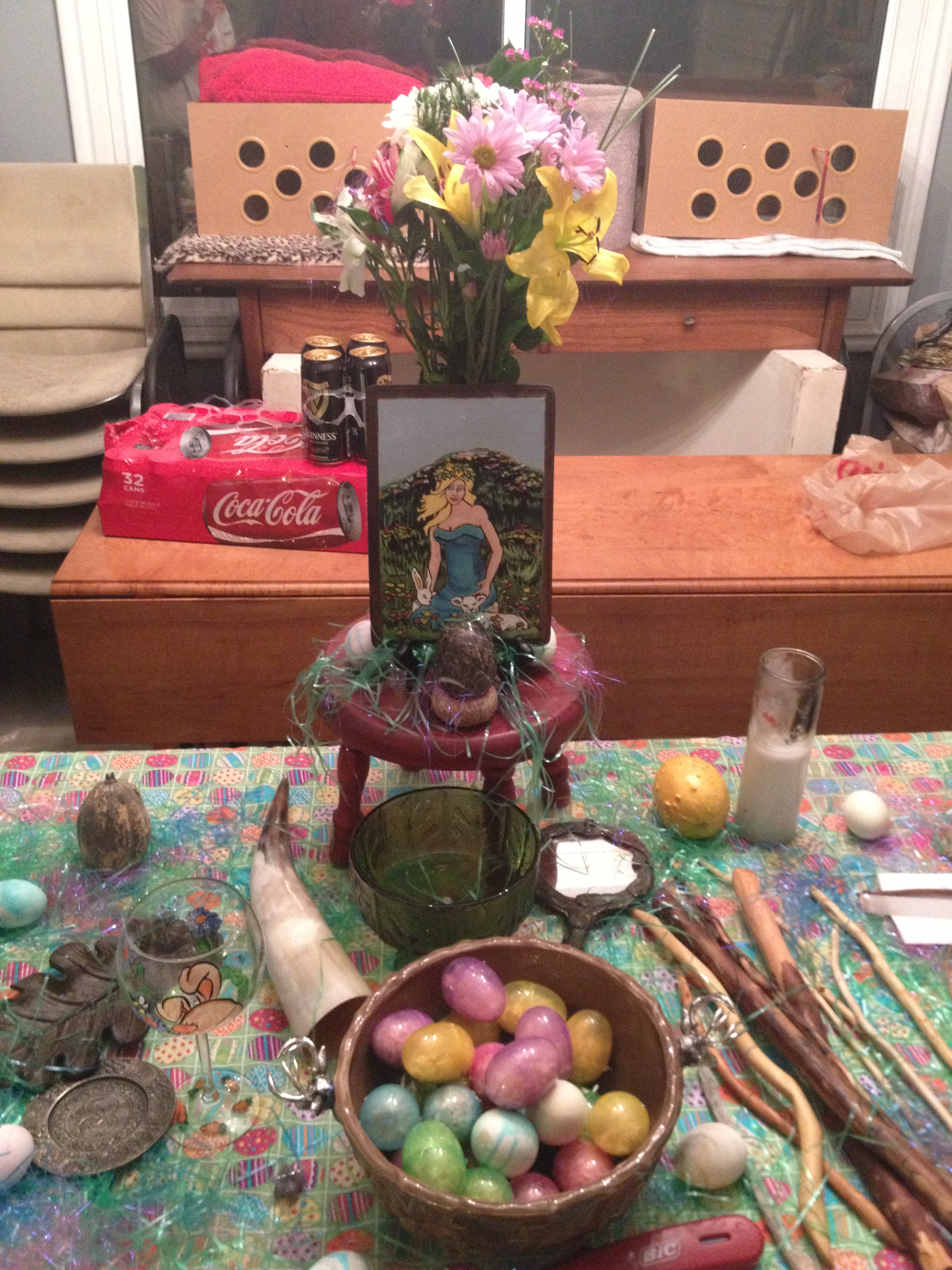 Personal libations to the Goddess came after a small break. President Cureton performed a druid spring rite and then the ritual came to a close. The feasting included dishes such as roasted eggs, potato salad and spare ribs! Check out the photos below.