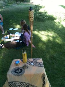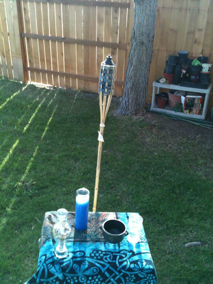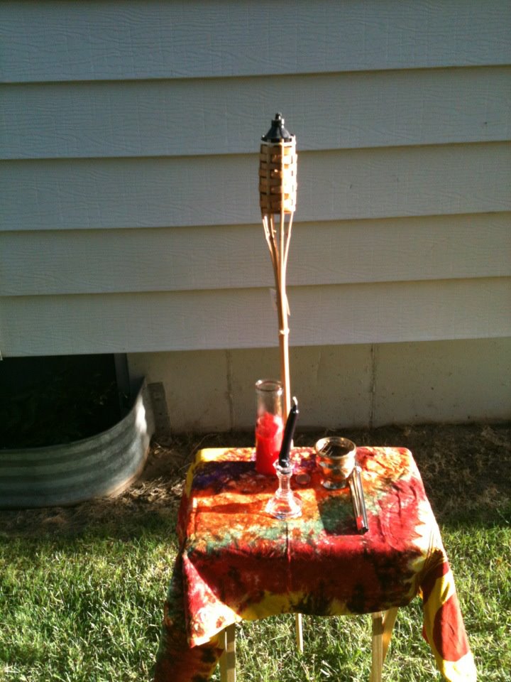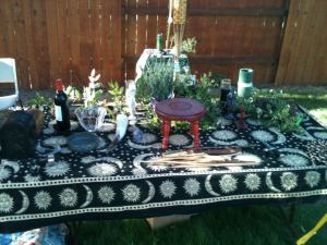 Starting the ritual right after sunset, President Daniel Cureton got things rolling with the calling the elements and deities and giving praise and honor to the aging Gods and Goddesses in the Wiccan Celtic pantheon. With a beautiful altar, all those present danced and sang while beating drums, shaking rattles and ringing bells!