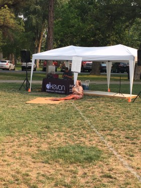 17th Annual Salt Lake City Pagan Pride Day, entertainment booth with a mermaid performing, Liberty Park, Saturday, August 18, 2018, Salt Lake City, UT