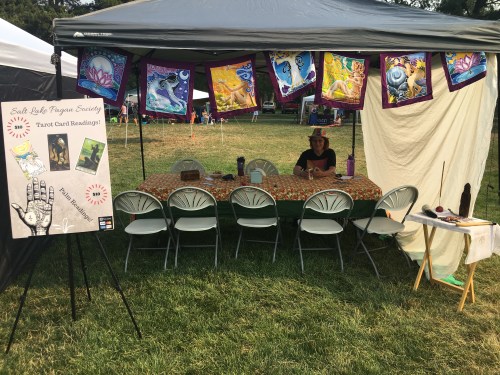 SLPS did $10 tarot and palm readings, and did about 15 in total. Not bad for an event full of psychics and fellow readers. SLPS was tented next to the Blue Antler of Tooele-a Pagan shop out that way. A few local shops, like Elemental Inspirations of Sugar House and the Rusty Skull were there as well.