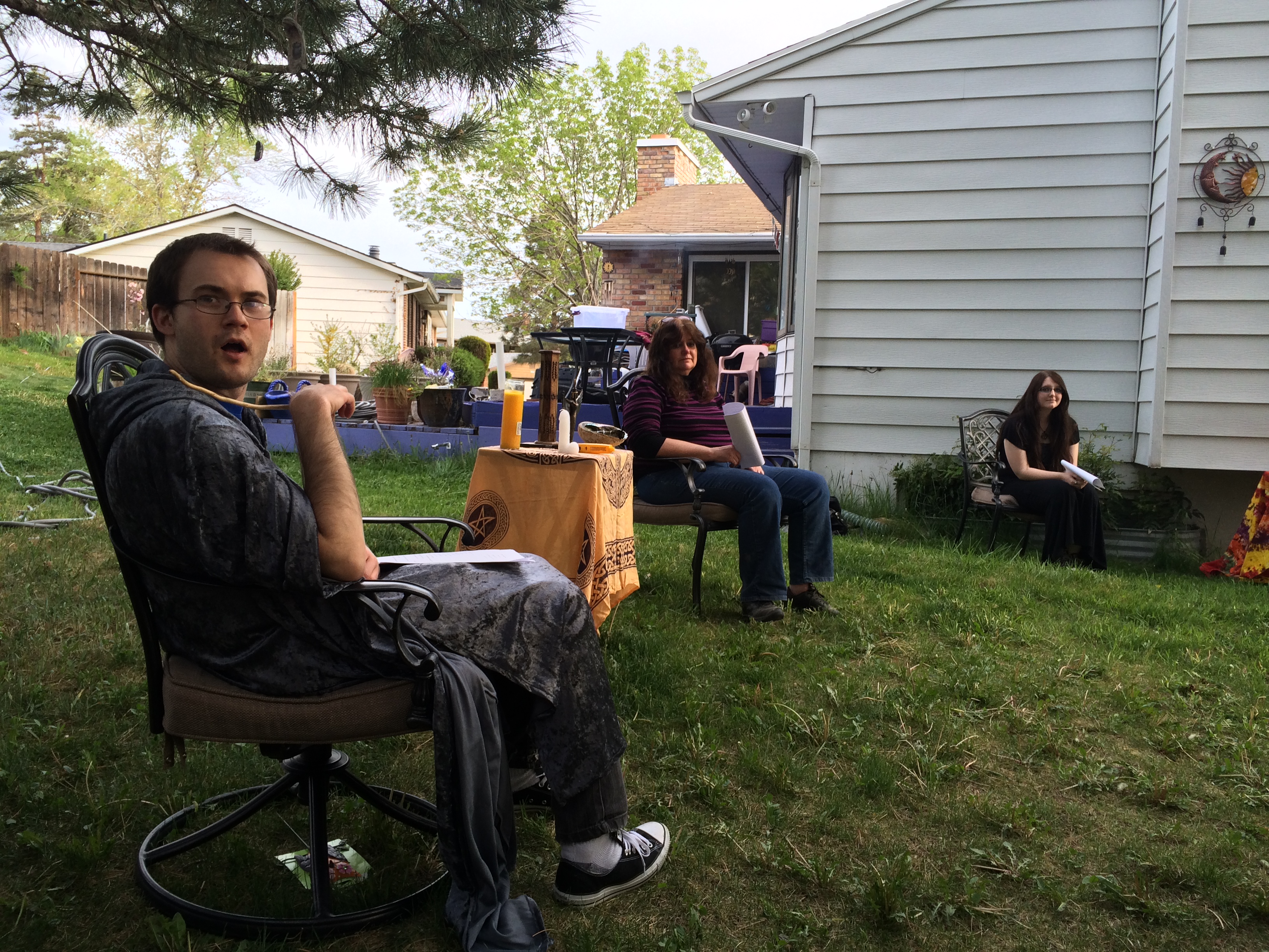 Beltane Ritual, l to r: April Love, Rick Saunders, Ashton Longhurst, chinese checkers, Sunday, May 7, 2017, Salt Lake City, UT