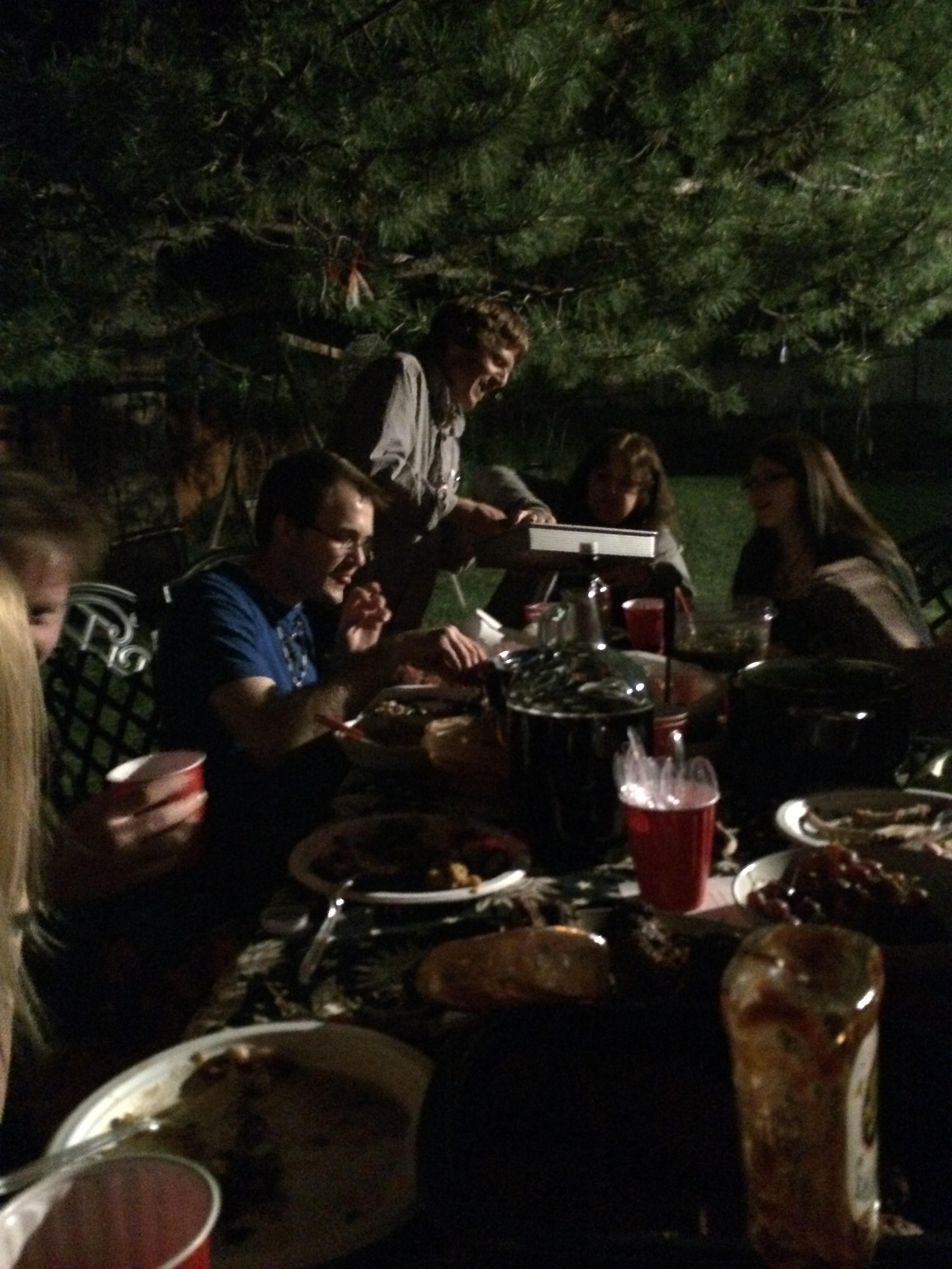 The feasting included homemade drunken German Chocolate cake, beef stroganov, and noodles.