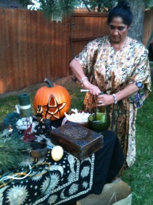 Offerings were given-seasonal fruits adorned the altar. Allegiances pledged while asking for guidance during this waning time. Kali Ma and Cernunnos were present to guide the attendees and give advice for the coming months.
