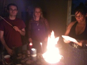Some spell workings were done, and a meditation by the fire with the song Pax Deorum by Enya helped the trance work.