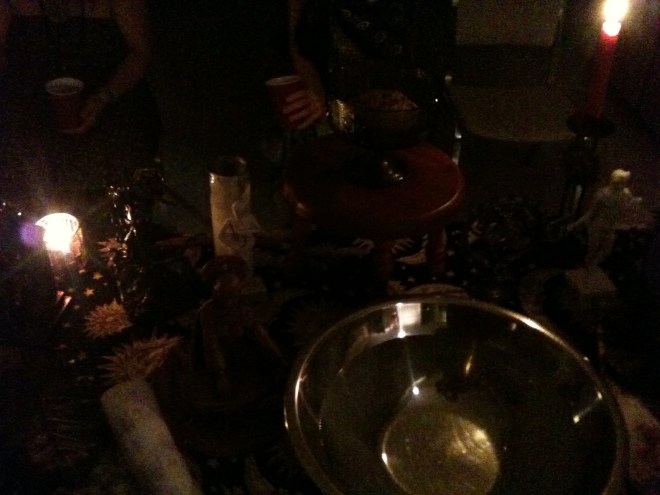 Next, those who needed to performed cleansing and charging magic before a welcoming of the new deities to the humble abode of the president. With drums, rattles, sistrums and other percussion instruments, the members and guests hailed and welcomed new gods and goddesses to the circle such as Apollo and Medusa! They certainly showed up, as everyone reported feeling the shivers up and down there spine the power the gods and goddesses bring.